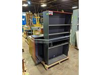 Small metal filling drawers, coat rack, folding table, shelf unit 36 inch wide X 72 inch high X 12 inch deep