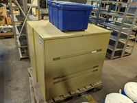 486 (2) 3 Drawer Filling Cabinets & Tote of Office Items