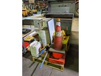 Barrel tipping stand, small step ladder, White boards, brooms, shovel