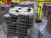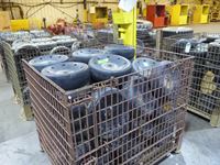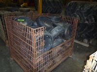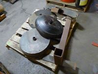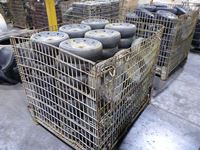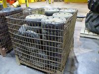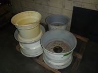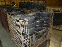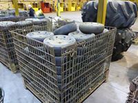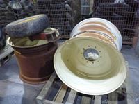 (5) 16 inch air seeder packer wheels, hitch pins, quantity of 2 inch X 10 inch shafts