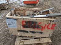 (4) mud flaps, Ford 302 header, driveshafts, cultivator shovels, (5) drill head bits, (1) roll of wire, crop lifters