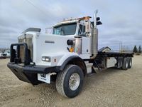Caterpillar 3406E engine, 18 speed transmission, air ride suspension, 12,000 lb front, 45,000 lb rears, front axle air ride assist, Bryden winch, 5th wheel, beacon lights, aluminum wheels, 315/80R22.5 front tires, 11R24.5 rear tires