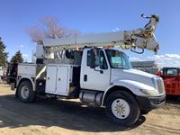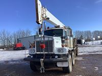 DT530 engine, Allison automatic transmission, air brakes, 12,000 front axle, 21,000 rear axle with differential lock, set up to tow air or electric brake trailers, Altec model D842 ART bucket and auger system with rear stabilizing arms, one auger with unit, new rear 11R22.5