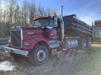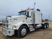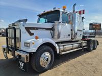 Cummins, 525 hp, engine brake, Eaton Fuller 13 speed transmission, mid rise integral sleeper, 12,000 front axle, 40,000 rears, 3 way locker, air ride suspension, air sliding 5th wheel, moose bar, headache rack, cab mounted beacon lights, Webasto engine and bunk heater, rear hitch and set up to pull electric brake trailers, aluminum rims, 11R24.5