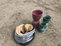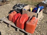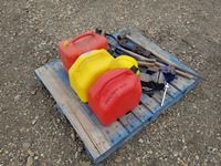 (4) jerry cans, life jackets, shop vac, horse halters, canners