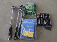hose reels, poly bins, jack stand, trailer receiver, angle grinder, ammo box, soldering gun