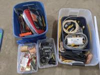 1459 Tote of Electrical Items, (2) Totes of Hand Tools, Tote of Miscellaneous Hardware