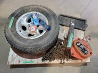 3 ton kito chain hoist, submersible pump & 12v solar hot water, impact driver, wrangler tire 235/75R15 w/ rim & hitch mount jerry can holder