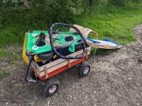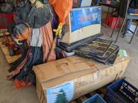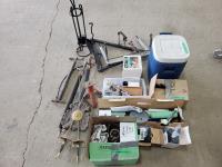 Honey bee boxes, ice auger, ladder jacks, extension cords, vice, indoor electrical wire, weed eater
