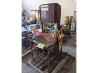 Jobmate stand, umbrella, pressure washer nozzles, scale w/ wooden box, outdoor décor & assorted tools
