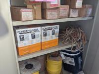 Qty of miscellaneous items westward 6 drawer toolbox with assorted tools, scale monitor, floor heating system, (2) headlight for 2006 Kenworth T-370, yard light & power meter, hydraulic filters, systems & housing for gravel trucks, (3) pack 6 ft extension cords, 12 inch pipe wrench, XXL shirt & voyage drone, assorted baldwin filters