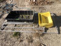 (1) poly fence feeder, (2) calf sleds, 45 inch H X 92 inch long panel with small gate