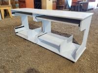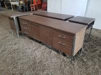 72 inches wide x 20 inches deep x 30 inches high storage unit, 60 inches wide x 20 inches deep x 30 inches high storage unit, 24 inches wide x 48 inches long x 30 inches high table, 24 inches wide x 20 inches deep x 30 inches high school desk