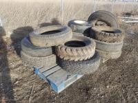 (3) rib 11.00X16 no rim, (2) 8.25X14 w/ rims, (4) 7.50X16 no rims, (2) 8 bolt 7.50X16 w/ rims, 2000 Ford 265/75R16 tire w/ 5 bolt rim, 235/75R15 tire w/ 5 bolt rim, 6.00X16 tire w/ 6 bolt rim, 6.50X16 tire w/ 6 bolt rim