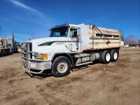Mack E7-460 460 HP engine, engine brake, Eaton Fuller 18 speed manual transmission, Injectors changed and new injection pump installed November 2022, A/C, radio, moose bumper, 15 ft box, hoist, LoadShare front air assist suspension, 205 inch WB, pintle hitch, tall silage end gate, aluminum front wheels, 385/65R22.5 front tires, 11R22.5 rear tires
