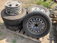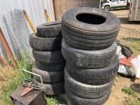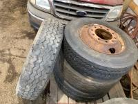 (2) steel rims with 12RX22.5 tires, (3) steel rims with 275/70-22.5 tires, tire only 285/75R22.5