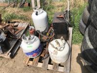 1944 Lincoln Air Greaser, Texaco Pail and Strogarm Model H-100 Floor Jack