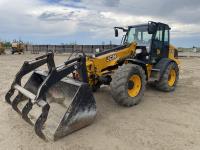 JCB 4 cylinder turbo diesel, Telescopic boom(14 ft reach, 16 ft height), 6390 lb cap, hydraulic Q/C, 8 ft bucket w/grapple, aux hydraulic, joystick, air conditioning, enclosed cab, block heater, rear clevis hitch w/pin, Michelin 500/70R24 tires, fenders.