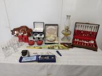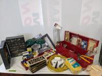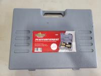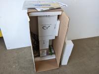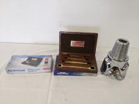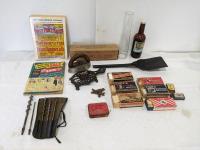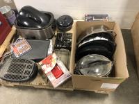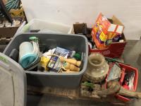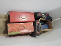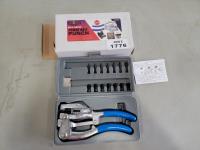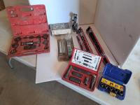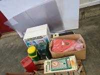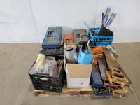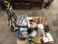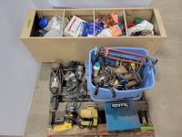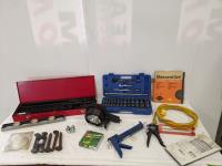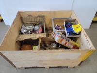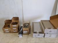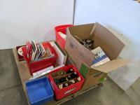Box of various automotive alignment parts, camber kit, pitman arm, tie rods, cam bolts and (1) box of brake hardware accessories