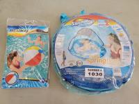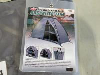 Fridge, stove, dinette, pull out couch, rear bunks, bathroom, front queen bed, outdoor shower, spare tire, 205/75D15 tires