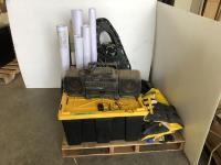 (5) 1 inch x 10 ft PVC conduit, (4) 1 inch X 10 ft galvanized pipe, 12 inch heat duct, (2) rolls of poly sheeting, wood box, 22 inch l x 20 inch d x 18 inch h, wood box, 22 inch l x 20 inch d x 22 inch h