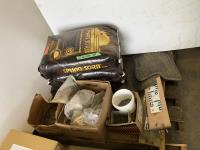 Qty of nails, screw nails, fencing staples, (3) 62.3L bags of Sphag Sorb environmental organic absorbent, (2) rubber truck mats, (3) water measurement sticks