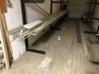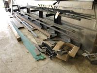 Threaded rod of various thicknesses 2 ft to 10 ft lengths, 2.5 inch x 2.5 inch x16 ft steel tube, 8 inch x 13 ft steel U-channel, qty of tin strips 3 inch x 10.5 ft 1/4 inch steel plate 2.5 inch x 20 ft l, decorative slate: (1) 10 inch x 26 inch, (1) 12.5 inch x 16.5 inch, miscellaneous cuts of steel, right angle decorative brown and white trim: 10 ft l x 1 inch d x 1 inch h, white trim: 45 ± strips, brown: 45 ± strips, (10) right angle white trim: 10 ft x 2-3/4 inch x 1/2 inch, (3) black right angle trim: 10 ft x 2-3/4 inch x 1/2 inch, (4) 10 ft x 8 inch tin, roll plastic 52 inch w