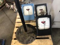 Assortment of survey maps of Alberta, (2) life jackets, gun cleaning kit, pair of snowshoes, (4) water pump hose filters, RV air station, pair of walking sticks, wall key box