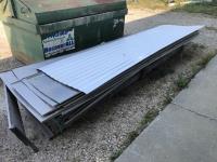 (2) 1/2 inch x 8 inch x 12 ft aluminum plate, (1) 2.5 inch 11 ft roll aluminum, assorted angle iron, flat plate, 3/4 inch square tubing, 2 inch x 4 inch x 20 ft tubing, (3) 6 ft door hinge brackets, 3/8 inch x 12 ft cold roll aluminum