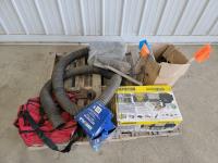 Champion 5000 lb winch kit, first aid kit, pipe wrench, (2) swing seats, clothes line reel, snowman, shop vac hose