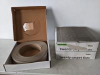 1032 (2) Boxes of 19-1/2 Inch X 19-1/2 Inch Carpet Tiles and 120 Ft of Vinyl Baseboards (Camel Color)