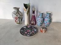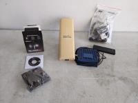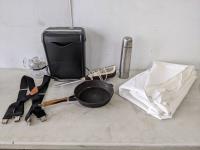 (2) heaters, punch bowl, (4) small computer speakers, large watering can