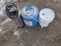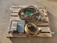 Backpack sprayer, sling, straps, size 10 hip waders, drill bit set, Pelican case