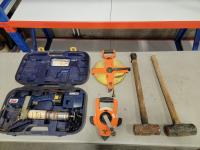 5006 Lincoln Electric Grease Gun, 330 Ft Tape Measure, 100 Ft Tape Measure, (2) 22 Inch Sledge Hammers