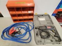 5105 Ryobi Hammer Drill, Booster Cables, Bolt Bin