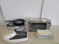 Scale, cast iron pans, Black & Decker toaster oven, Bravetti slow cooker