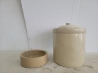 1687 Small Butter Crock and 4 Gallon Crock with Lid