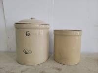 1688 6 Gallon Crock with Lid and 3 Gallon Crock