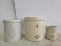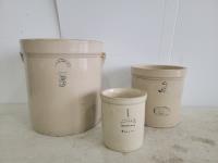 1689 5 Gallon Crock, 1/2 Gallon Crock and 2 Gallon Crock