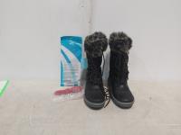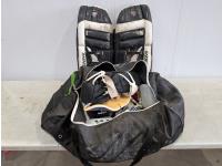 Size 9 men's Bauer skates, (3) baseball gloves, Oxygen roller blades, Response hockey stick