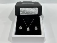 1983 Smartlife 925S 1.0 Carat Lab-Created White Sapphire Halo Stud Earrings and Necklace Set (Unused)