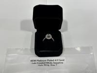 1990 Smartlife Platinum Plated 4.0 Carat Lab-Created White Sapphire Halo Ring - Size 7 (Unused)