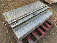 Headlamps, warning triangle flare kit, cold air intake, small poly water tank 30-3/8 inch w x 10 inch d x 20-7/8 inch h