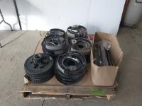 (9) drum brake dust shields, (14) brake/slack adjusters, (2) track rod ends, (4) cam shaft repair kits, miscellaneous fittings and gaskets