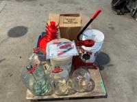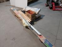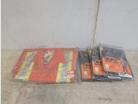 (2) emergency door bars, extension cords, volunteer vests, suspended ceiling hardware, 48 inch x 1/4 inch wooden stakes