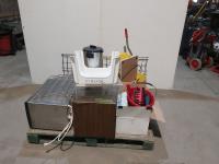 (6) Grill bricks, (2) mop buckets, kitchenware, electric urn, (2) microwaves