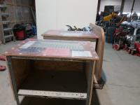 40 inch x 26 inch x 37 inch H filing cabinets, 57 inch x 39 inch folding table, 36 inch x 30 inch x 15 inch wooden cabinet, hardware, tools, snowboard bindings