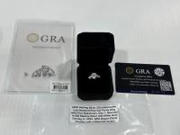 mounted in 925 sterling silver with white gold overlay, D, VVS1, GRA Report, test positive with a diamond tester