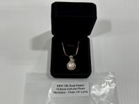 mounted in 925 sterling silver with white gold overlay, chain adjustable 16 inch to 18 inch