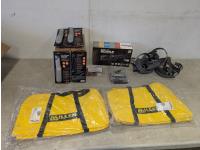 Safety utility knives, Maglite recharge kit, helmet/faceshield head bands, bits, (2) Miller bags